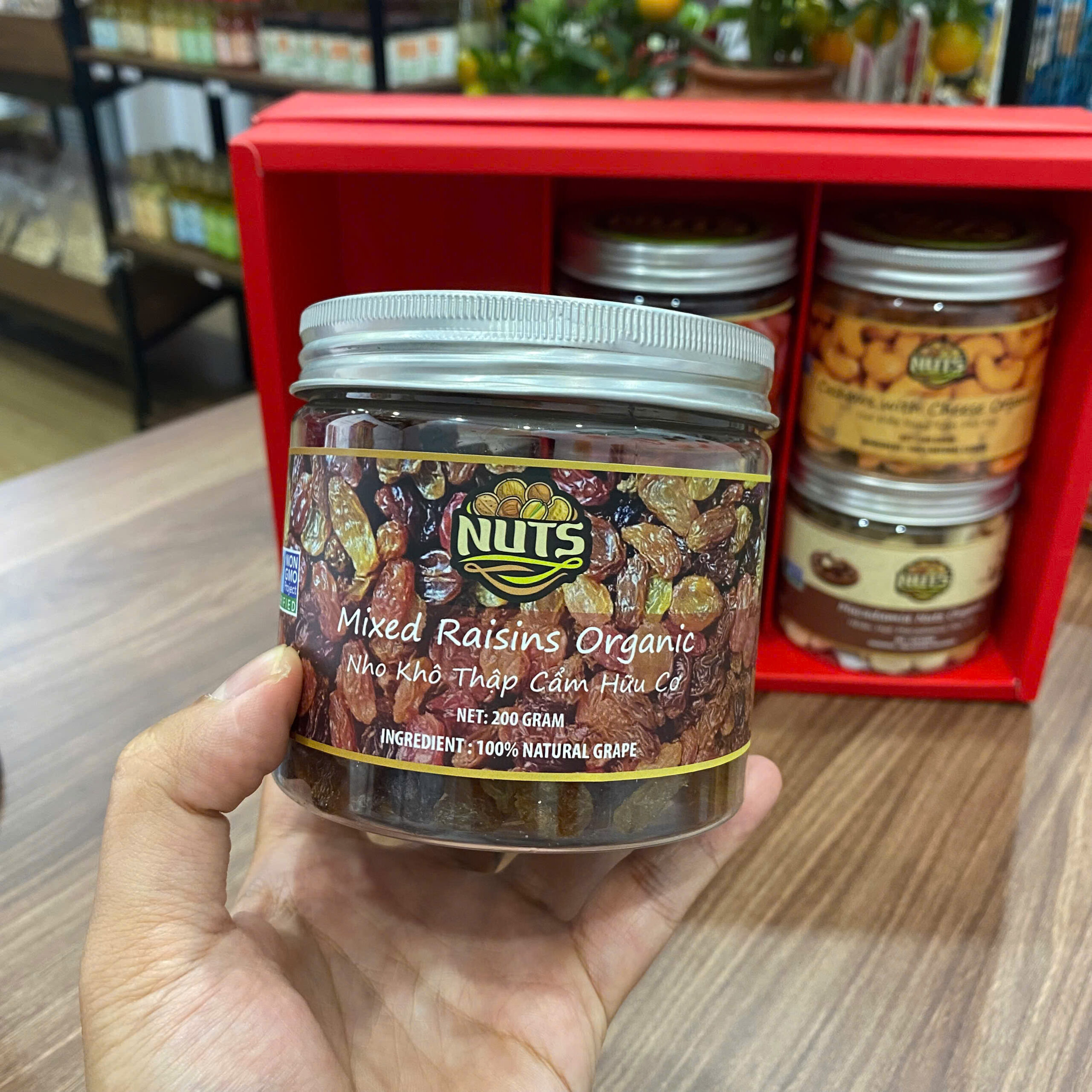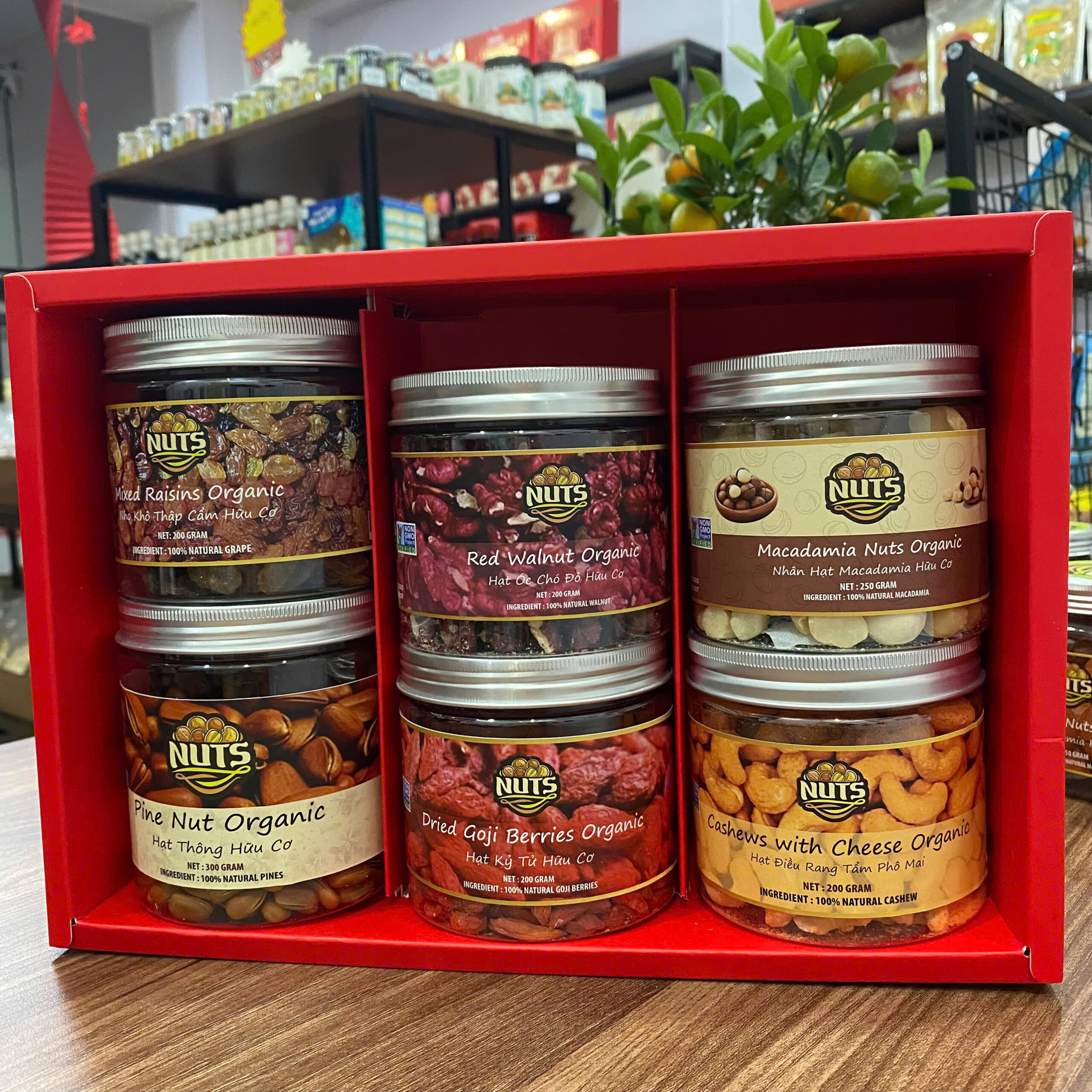 Nuts Vip 5 là set quà kết hợp nhiều loại hạt và quả khô được ưa chuộng: nho khô thập cẩm, hạt kỷ tử, hạt điều rang tẩm phô mai, hạt thông, hạt óc chó, nhân hạt maca. Vị ngọt dịu của trái khô hòa cùng độ giòn bùi của các loại hạt tạo nên trải nghiệm ăn vặt “healthy” nhưng vẫn ngon miệng.